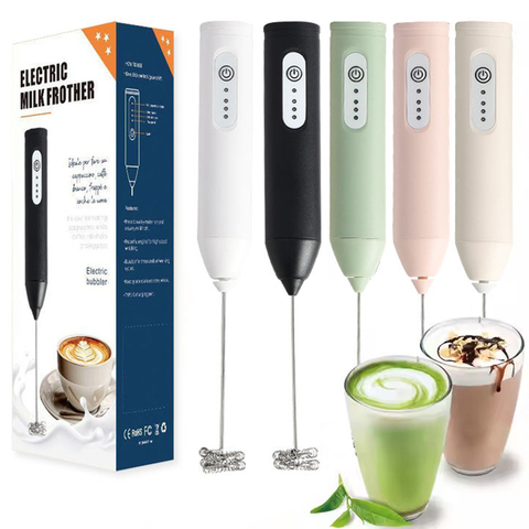 เครื่องตีผสมเครื่องดื่มเครื่องตีฟองนมแบบชาร์จไฟได้2หัวความเร็ว3ระดับสำหรับลาเต้